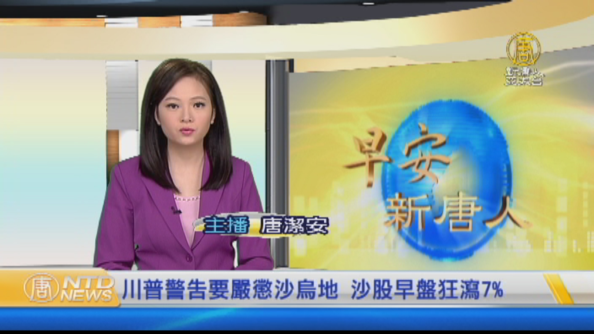 【新唐人亞太台 2018 年 10 月 15 日訊】早安新唐人先來看到,美國《華盛頓郵報》特約專欄記者失蹤,被傳疑似遭到沙烏地阿拉伯政府的跨國殺害,對此,美國總統川普警告,如果消息屬實,將對沙烏地阿拉伯施加「嚴厲懲罰」,刺激沙國股市今天開盤暴跌7%。