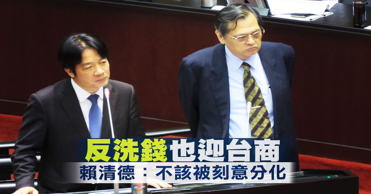 反洗錢也迎台商 賴清德:不該被刻意分化