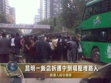 2010-06-23 17:55:0823號上午11點左右,雲南昆明正在進行拆遷的雲南飯店突然倒塌,砸傷了附近公車站2名正從公交車下車的乘客。