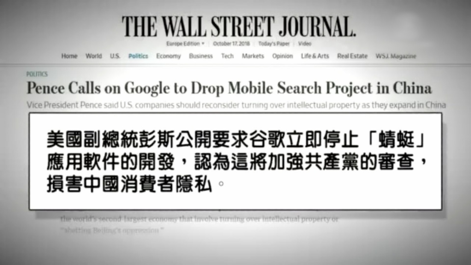 2018-10-16 20:42:44好,搜尋引擎龍頭Google的執行長皮采,週一首度證實,正在實驗一項能在中國運作的審查版搜尋引擎,也就是外界傳言已久的「蜻蜓計劃」。他表示,探索中國巿場對Google而言很重要。不過他也坦言,這項服務可能永遠不會在中國正式推出。而一名Google前工程師透露,Google八年前停止中國的搜索業務前,曾配合中共的內容審查要求,15分鐘內刪除特定新聞,這名Google前工程師擔心,Google一旦重返中國,面臨的審查要求可能會更加嚴格。美國副總統彭斯,日前也在演講中點明,對這個「蜻蜓計劃」的憂慮,並公開呼籲G