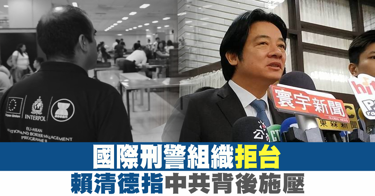 國際刑警組織以「一中」因素,拒絕台灣申請為大會觀察員,行政院長賴清德認為不合理,也指出中共在背後主導。