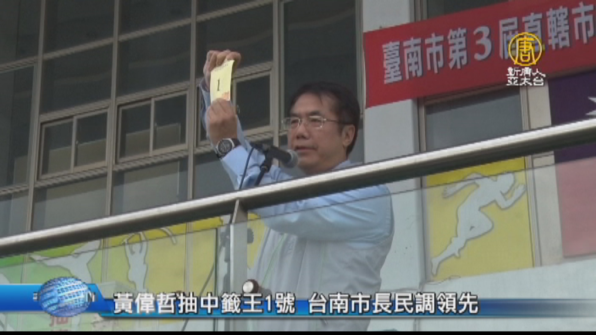 【新唐人亞太台 2018 年 10 月 19 日訊】鏡頭轉到台南,市長候選人今天上午進行號次抽籤, 民進黨黃偉哲抽中籤王,國民黨高思博抽中2號,無黨籍林義豐抽到3號,目前黃偉哲的民調仍坐穩領先。