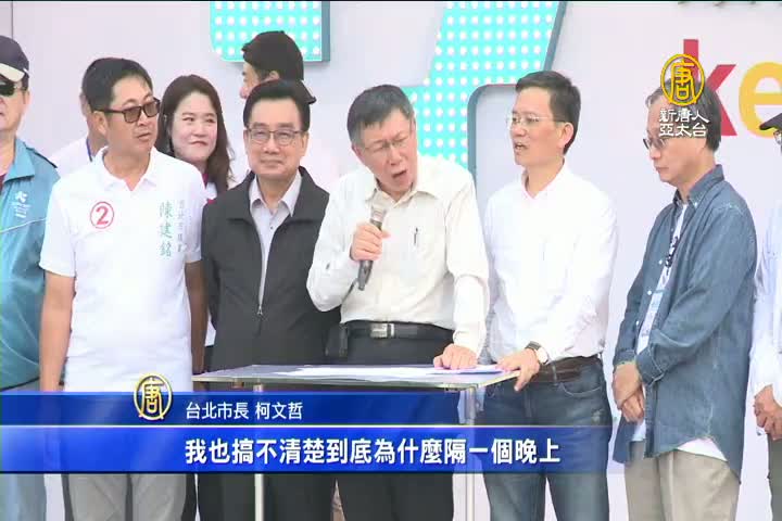 【新唐人亞太台 2018 年 10 月 20 日訊】新聞一開始,首先來關心年底選戰。台北市長柯文哲拚連任,以卡車改裝成行動競選總部,今天下午在北投七星公園舉辦開幕園遊會,不過因為卡車違規開進公園停放,遭公園處連續開罰。挨批帶頭違法,柯文哲說先前幕僚都說沒問題,強調下一次會改進。