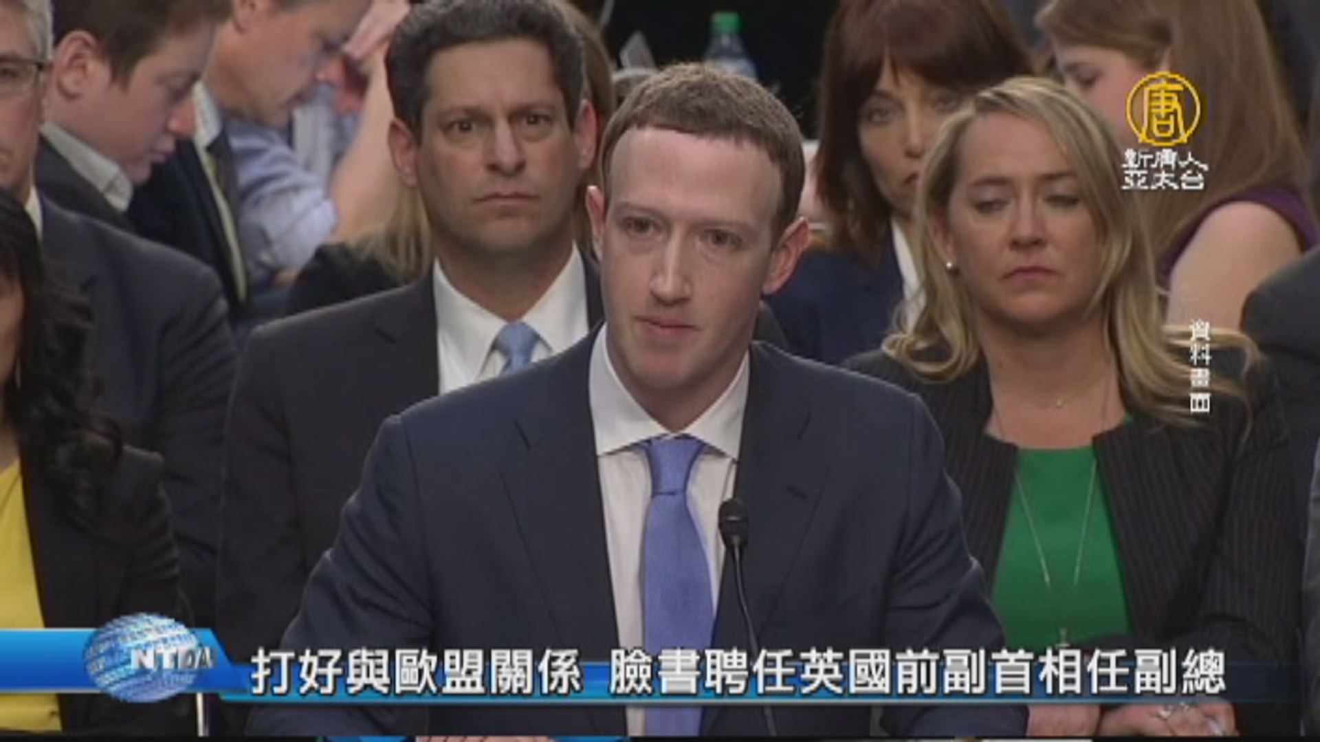 【新唐人亞太台 2018 年 10 月 20 日訊】臉書聘請英國前副首相克萊格,擔任國際事務與通訊傳播的副總裁。克萊格有二十年的政治經驗,外界認為,臉書招募來自政治界的主管,是想打好與歐盟的關係。