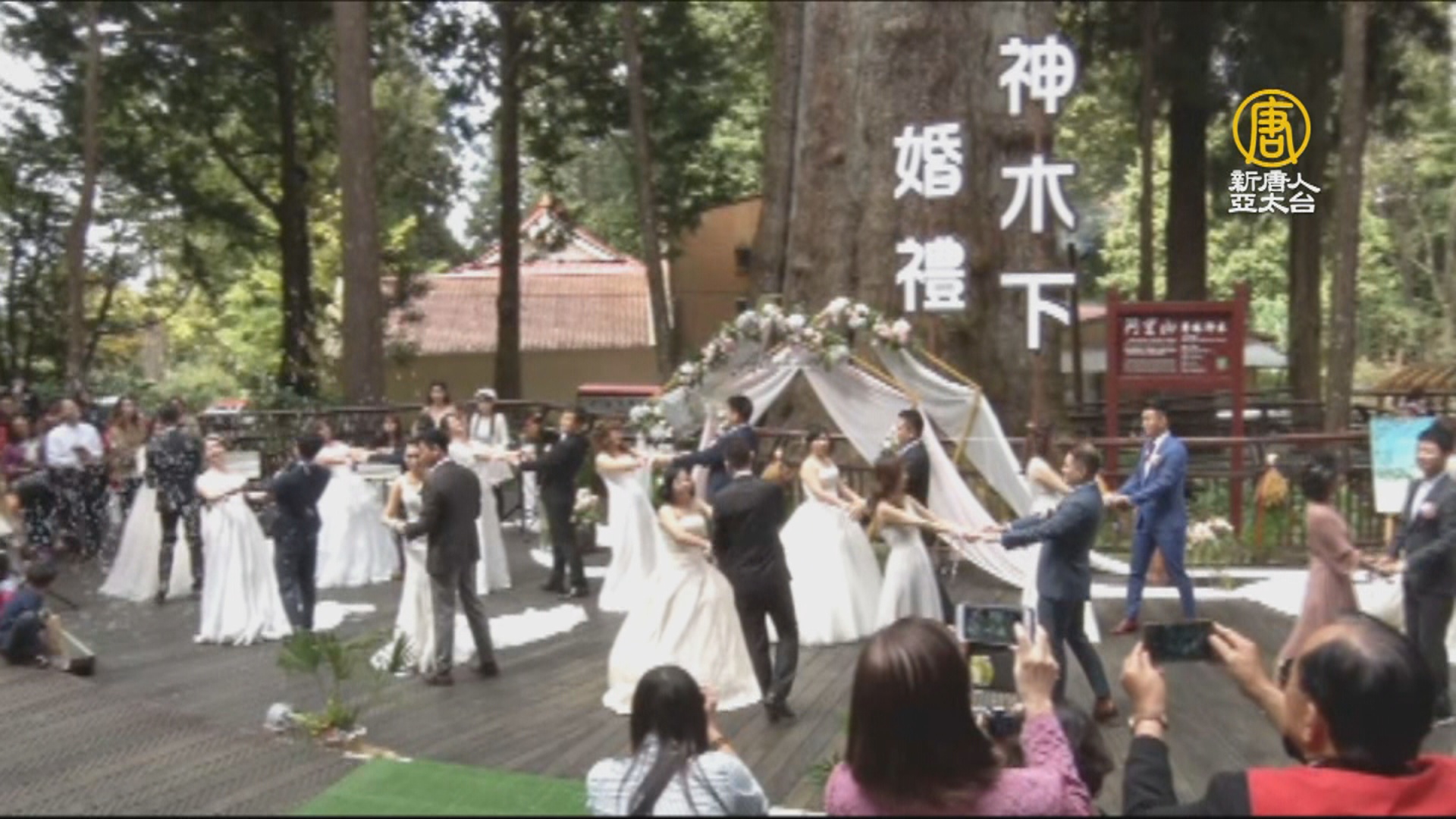 【新唐人亞太台 2018 年 10 月 22 日訊】號稱全台最高海拔婚禮的「阿里山神木婚禮」,今年邁入第12年。週日(21日)吸引15對國內外新人參加,主辦單位特別邀請8年前曾參加婚禮的新人,帶著3個兒女「回娘家」,一起見證愛的誓約。