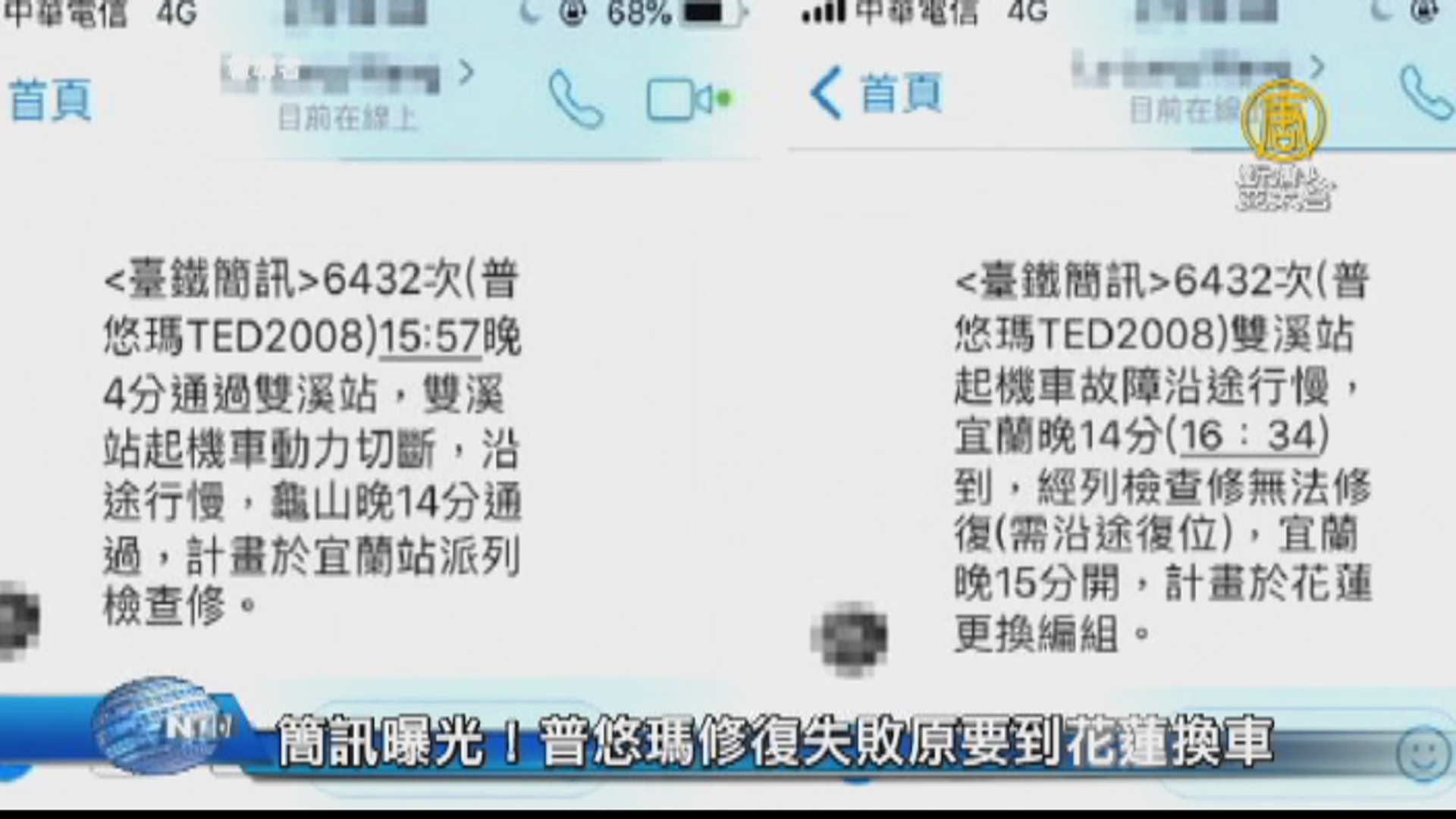 簡訊曝光!普悠瑪修復失敗原要到花蓮換車