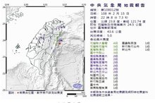 2019-02-15 22:28:40根據中央氣象局最新資訊,台灣東部外海今天(15日)晚間10時8分左右,發生芮氏規模5.0地震,地震深度43.6公里,震央位於花蓮縣政府南偏東方24.5公里,最大震度花蓮縣太魯閣4級,新北市五分山2級,目前沒有傳出災情。