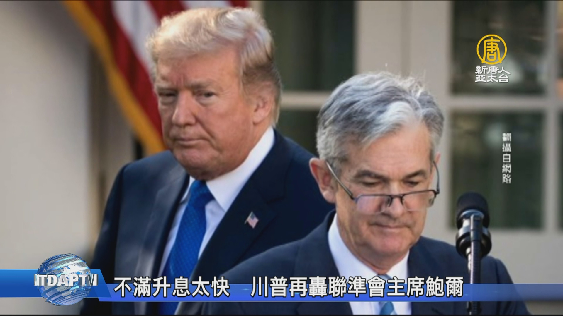 【新唐人亞太台 2018 年 10 月 24 日訊】一連串財經訊息,首先帶您關心,美國聯準會今年已經三度升息,總統川普不斷表達對升息過快的不滿,週二(23日),川普在接受專訪時,再度直接點名聯準會主席鮑爾。