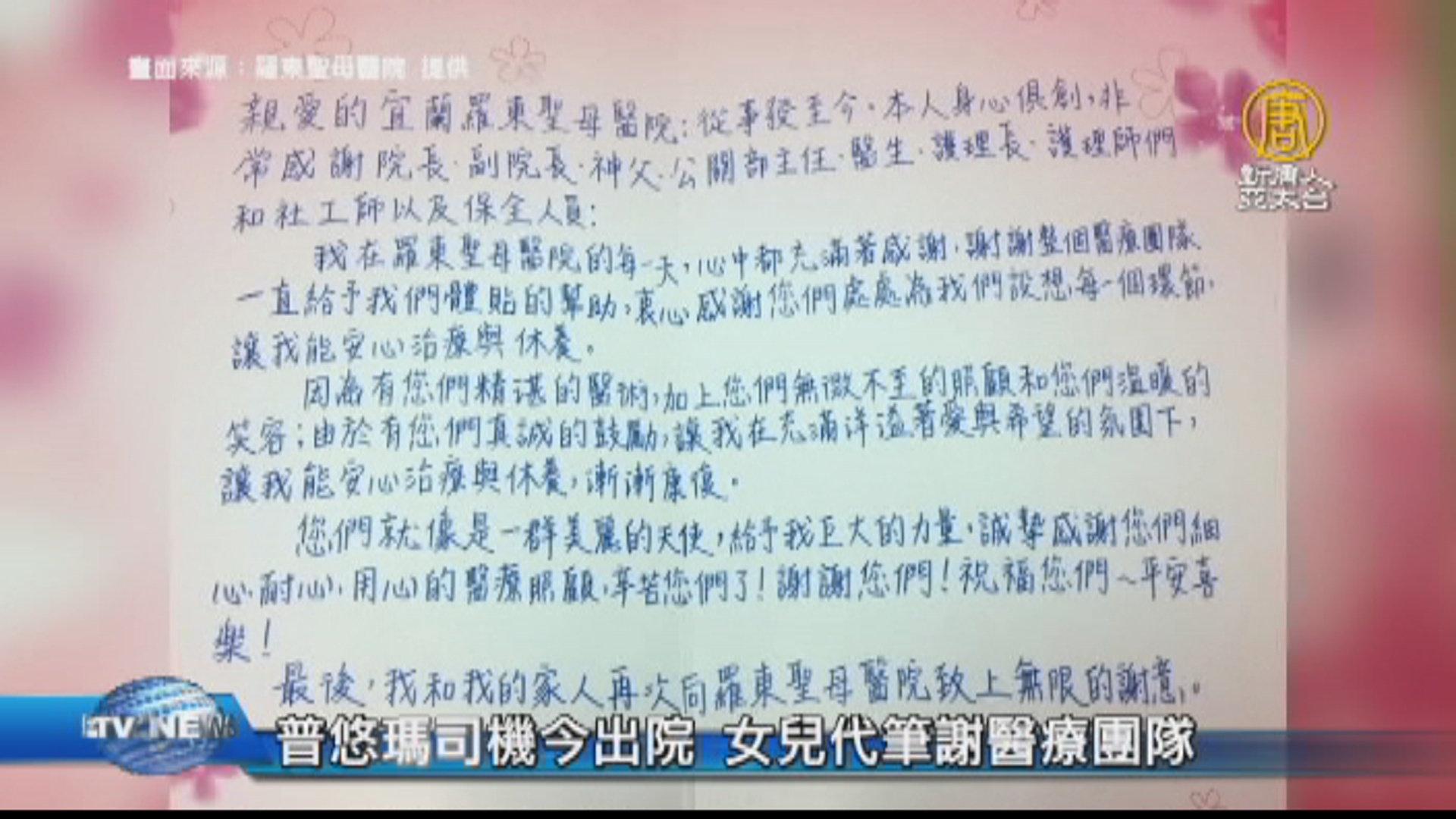 普悠瑪司機今出院 女兒代筆謝醫療團隊