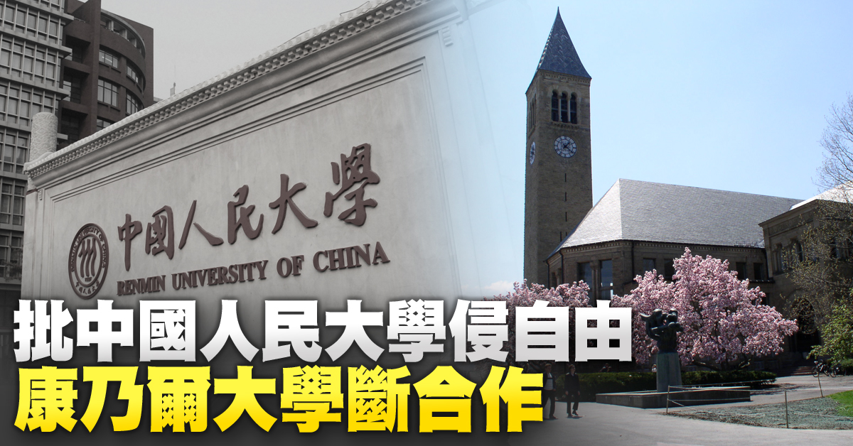 【新唐人亞太台 2018 年 10 月 29 日訊】美國康乃爾大學,傳出因不滿北京的中國人民大學壓制言論及學術自由,進而中斷雙方學術合作關係, 這是近年來國際大學和中國大學中斷合作的首例。康乃爾方面表示,人民大學嚴重違反學術自由,不讓人談論勞工問題,使得雙方合作研究無法進行,外國大學應當重新評估與中國大學的合作情況。