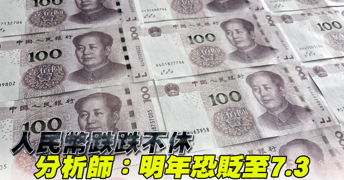 人民幣跌跌不休 分析師:明年恐貶至7.3