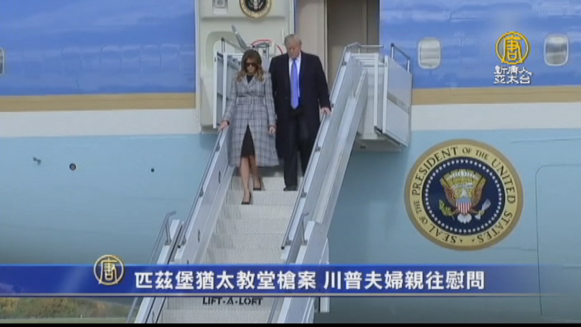 10月30日,川普總統夫婦專機抵達匹茲堡,慰問被兇手槍擊遇害的受難者家屬,以及數千名哀悼者。