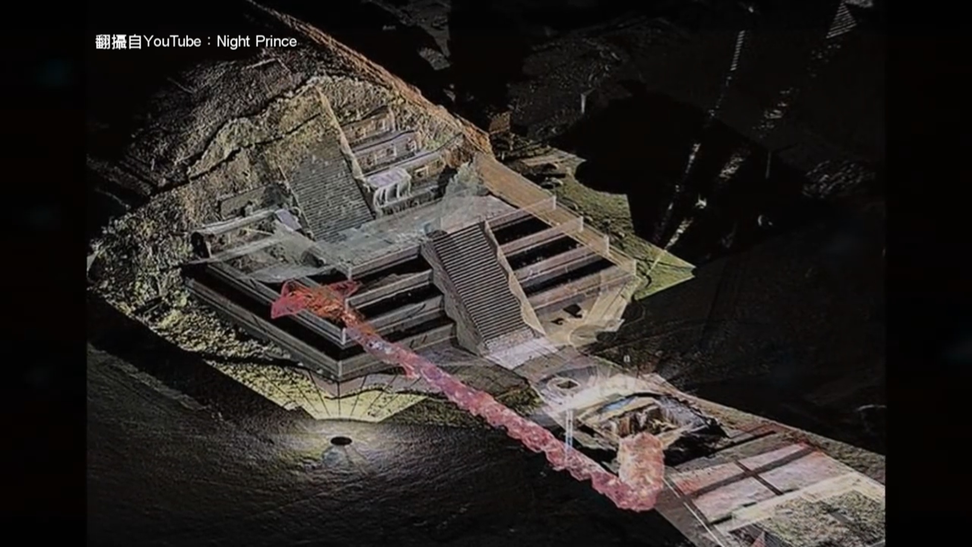 月亮金字塔 位於特奧蒂瓦坎 古代印地安文明 考古區中,去年6月,考古研究理事會的調查人員利用CT掃瞄,發現這個隧道位於金字塔下方近8公尺處,近期公布研究結果,專家表示,通道有祭祀用途,更是在模擬死後通往地下世界。
