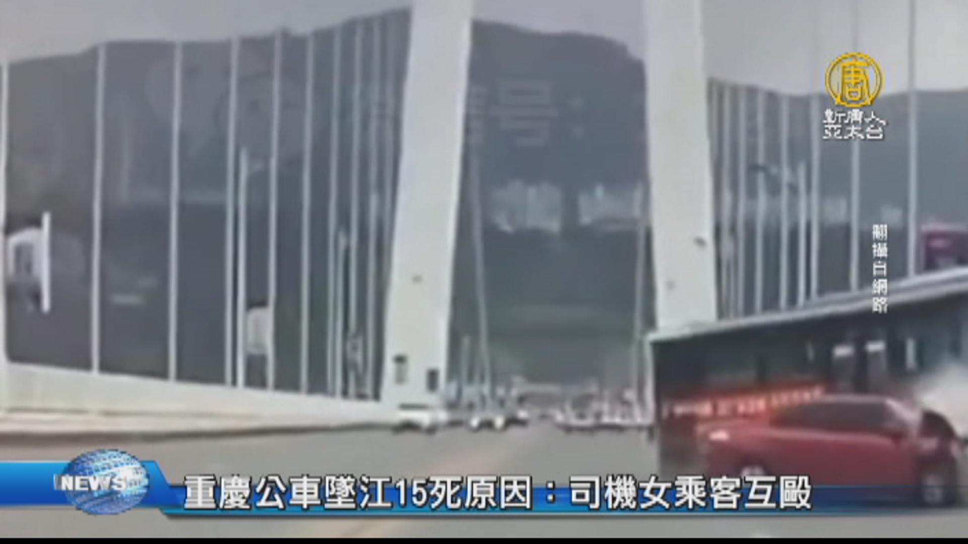 【新唐人亞太台 2018 年 11 月 02 日訊】再來關心這起不幸事件,中國重慶一輛公車,上個月28日墜入長江,導致15人罹難。現在事故原因曝光,竟然是,女乘客與司機互毆導致。 從事先下車的乘客說法和公車內部監視器畫面,證實當天車內有一名女乘客,因為坐過站要求司機停車不被理會,雙方先爆發口角衝突,接著乘客拿手機砸司機的頭部,司機也動手回擊,導致車輛失控逆向撞上對面來車,最後衝斷護欄,墜入長江。