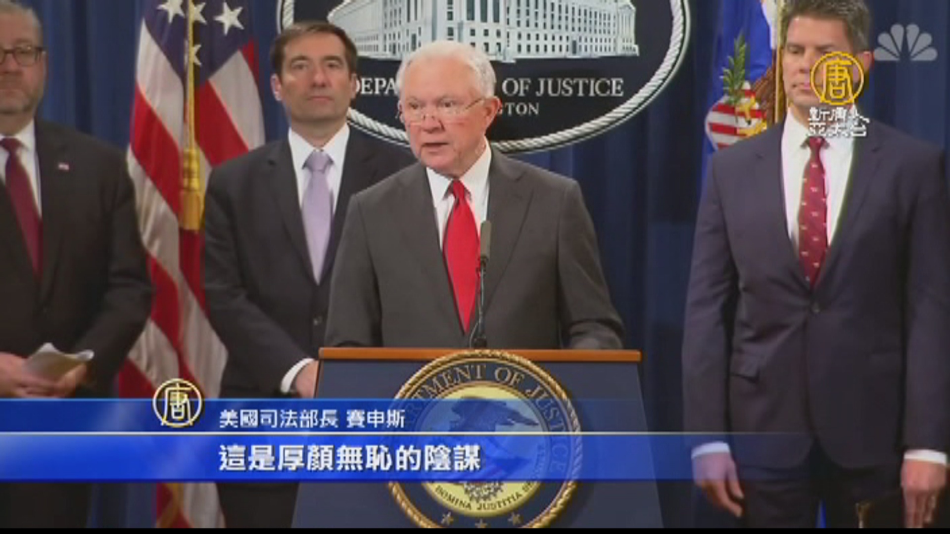 2018-11-02 12:52:05早安新唐人帶您看到最新消息,美國司法部長親自召開記者會,宣布起訴中國國營福建晉華公司和台灣的聯華電子公司與3名台灣人,他們被指共謀竊取美國美光科技公司的商業機密,價達87.5億美元,約台幣2690億元。