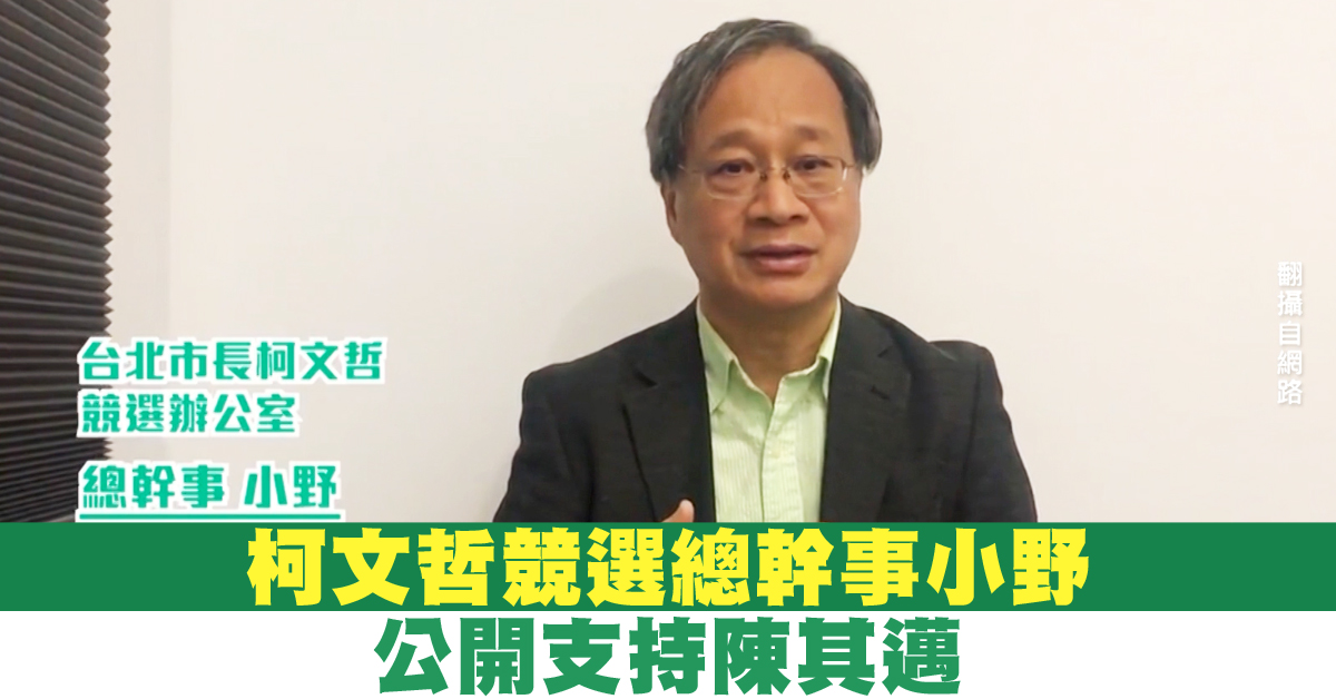 柯文哲競選總幹事小野 公開支持陳其邁