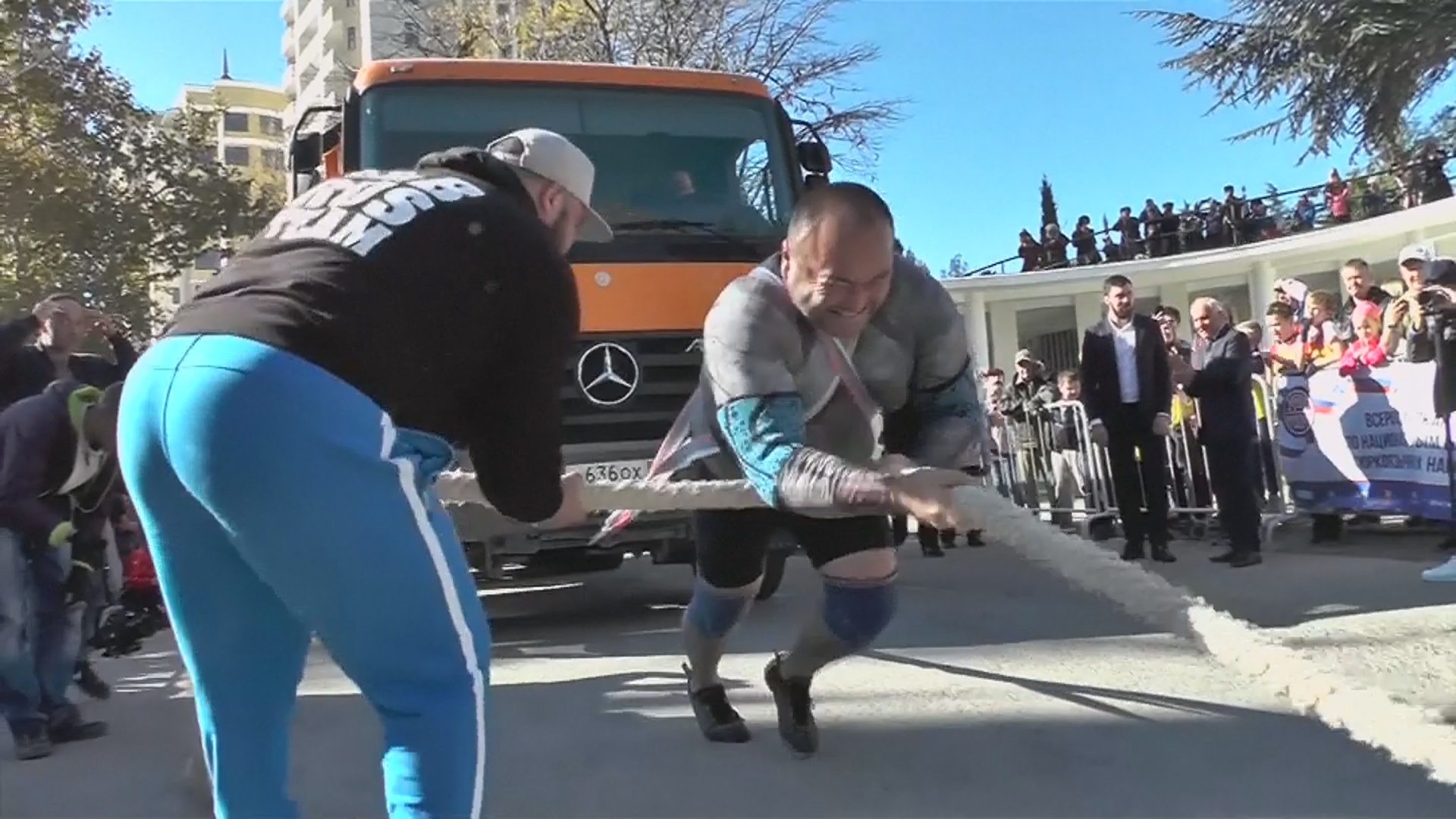 【新唐人亞太台 2018 年 11 月 13 日訊】俄羅斯有位身材魁武的大叔,用身體力量拉動26噸的大卡車,直行時間長達41秒,驚人的成績讓他自己也誇下海口,表示世界上沒有人能夠達到這個標準,現在就讓我們到俄羅斯去見證這位俄羅斯冠軍大叔的驚人挑戰。