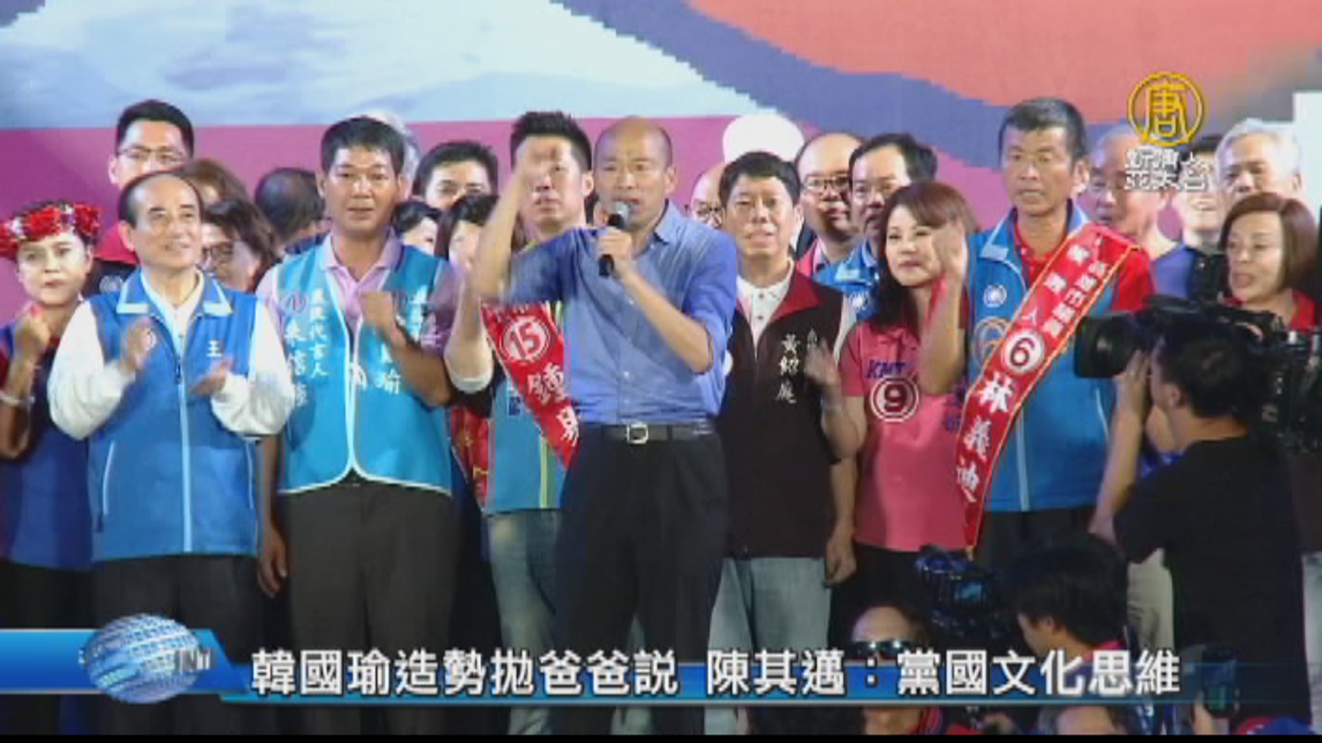 【新唐人亞太台 2018 年 11 月 15 日訊】韓國瑜昨天在岡山造勢大會上,脫口說出,民進黨也不是高雄人的爸爸,為什麼選舉都投給他,對此,民進黨高雄市長候選人陳其邁說,這是黨國文化思維。