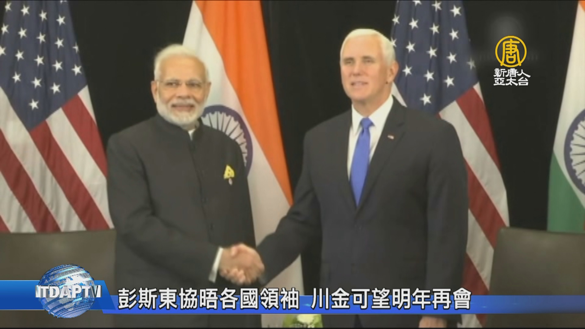 【新唐人亞太台 2018 年 11 月 15 日訊】好,各國領導人齊聚亞洲,在APEC前,先參加了東協的一系列會議,場邊會談也成為焦點,美國副總統彭斯,週三見了印度總理莫迪,今天則與南韓總統文在寅會面,針對川金二會,彭斯透露,川普計畫在明年初與金正恩會面,但他不會再犯過去的錯誤,讓北韓終結武器計畫承諾淪為空談。