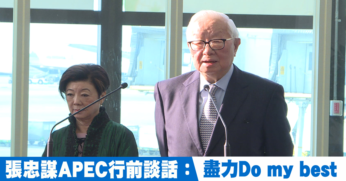 亞太經貿會議(APEC)領袖代表 張忠謀:「謝謝各位來到機場來送我,我會盡力的,do my best, 做我能夠所以做的,一方面也會在APEC會議當中發言,我在會外也會跟許多領袖有自然互動的機會,總之,APEC是滿重要的會議,APEC領袖會議尤其重要,因為這個是很少的我們台灣有機會,跟幾個國家的領袖有面對面見面的機會,那我們台灣也是APEC很重要的一員,無論在經濟上,或創新上非常重要的一員。」