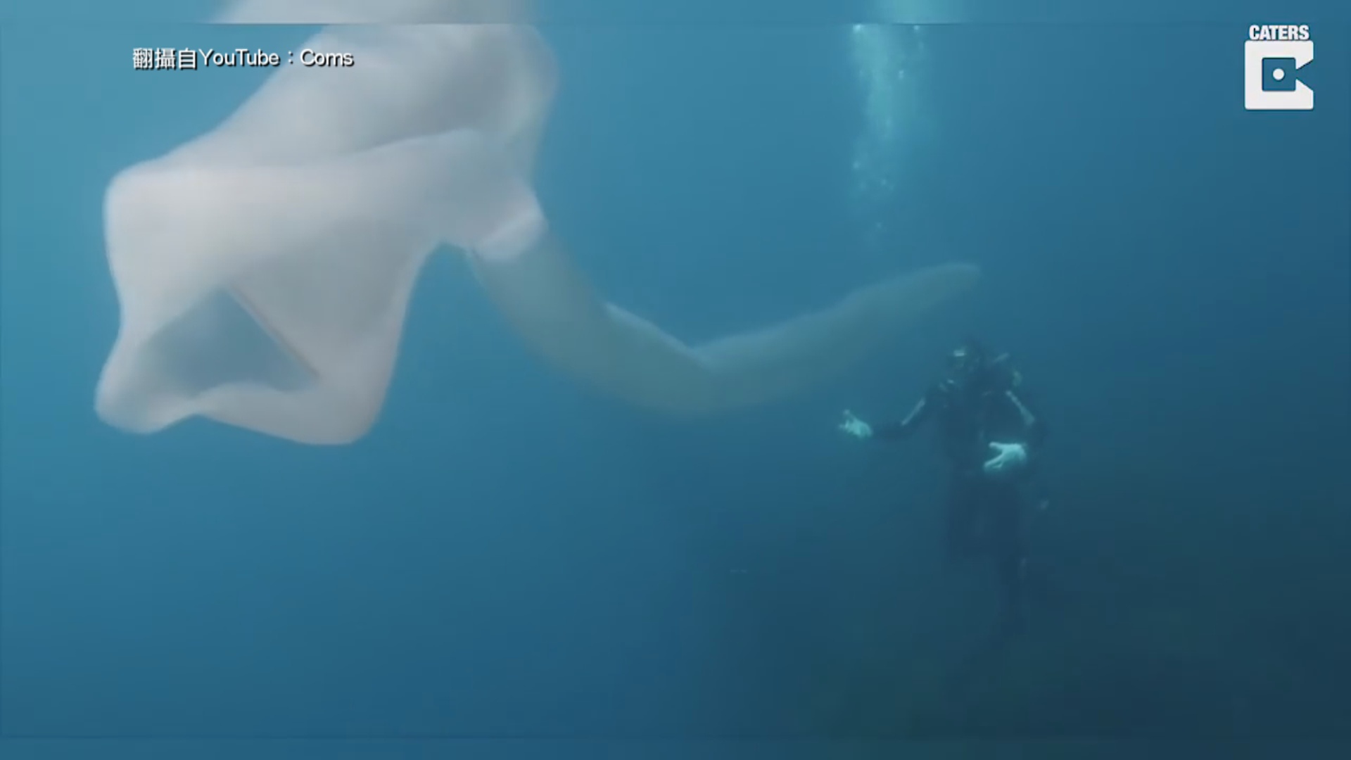 乍眼之下,還以為是大塑膠垃圾袋,潛水員對這個猶如「海怪」般的龐然大物感到嘆為觀止,在距離水面大約10公尺深處,以不同形態慢慢蠕動著,游了大約200公尺。