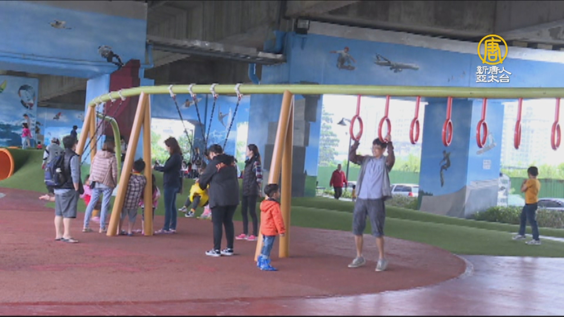 【新唐人亞太台 2018 年 11 月 19 日訊】人口稠密的都市,每一寸土地都得善加利用,常看見在市區內的高架陸橋,或高速公路底下的空間,被設置成遊戲區,桃園國道二號橋下,從國際路開始有一公里長的空間,也設置了許多遊樂設施,每到假日,這裡就成了孩子們的天堂。