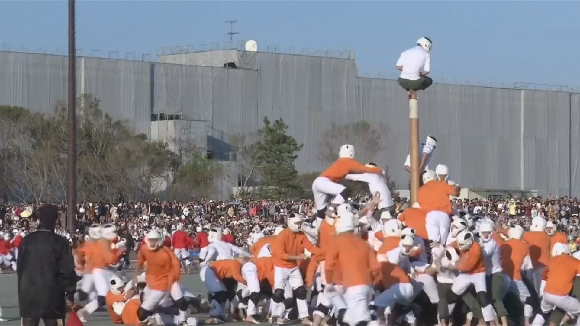 【新唐人亞太台 2018 年 11 月 20 日訊】倒杆比賽是日本防衛大學的年度盛事,參賽隊伍要派出150名成員,一半進攻、一半防守,進攻方要想辦法在90秒內把防守方的杆子拉下30度,比賽過程常常有激烈的衝撞、拉扯,堪稱全日本最狂野的比賽。