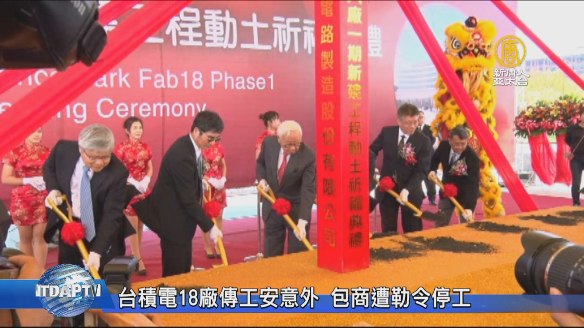 【新唐人亞太台 2018 年 11 月 21 日訊】年初才宣布動土的台積電南科18廠,周三中午時間傳出工安意外,高空作業車,疑似因為突然掉落鋁管,當場砸中車輛下方2名勞工,其中1人無礙,另1人頭部受傷、意識模糊。台積電表示,目前該包商已經暫時勒令停工。