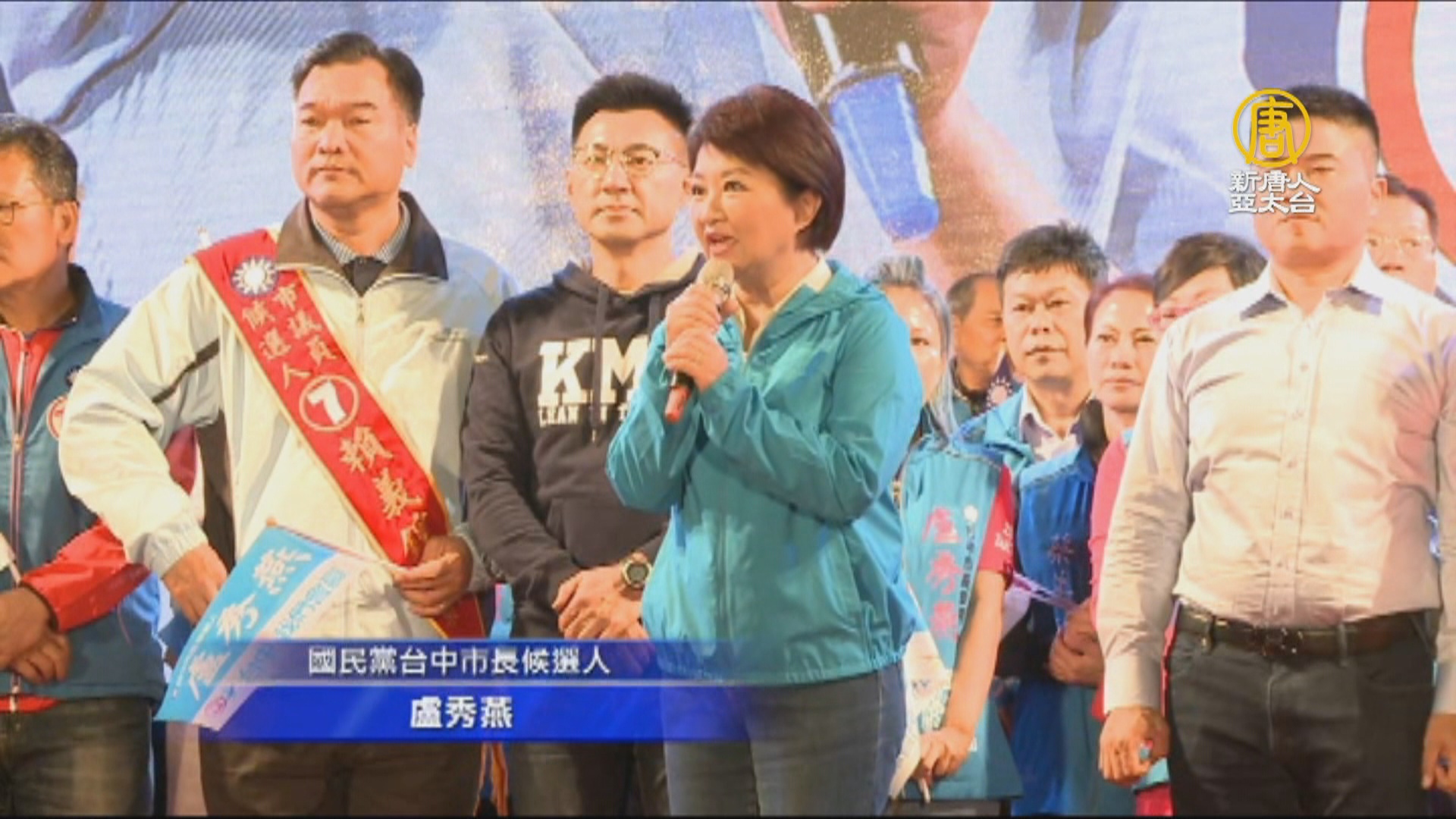【新唐人亞太台 2018 年 11 月 23 日訊】國民黨台中市長候選人盧秀燕選前之夜(23日)晚上,在台中老虎城廣場舉辦《台中非贏不可!》造勢晚會,由藝人徐乃麟、白冰冰擔任主持,國民黨新北市市長朱立倫、前台中市長胡志強與夫人邵曉鈴、競總主委江啟臣、競總總幹事顏寬恒、競總副主委楊瓊瓔到場助陣。