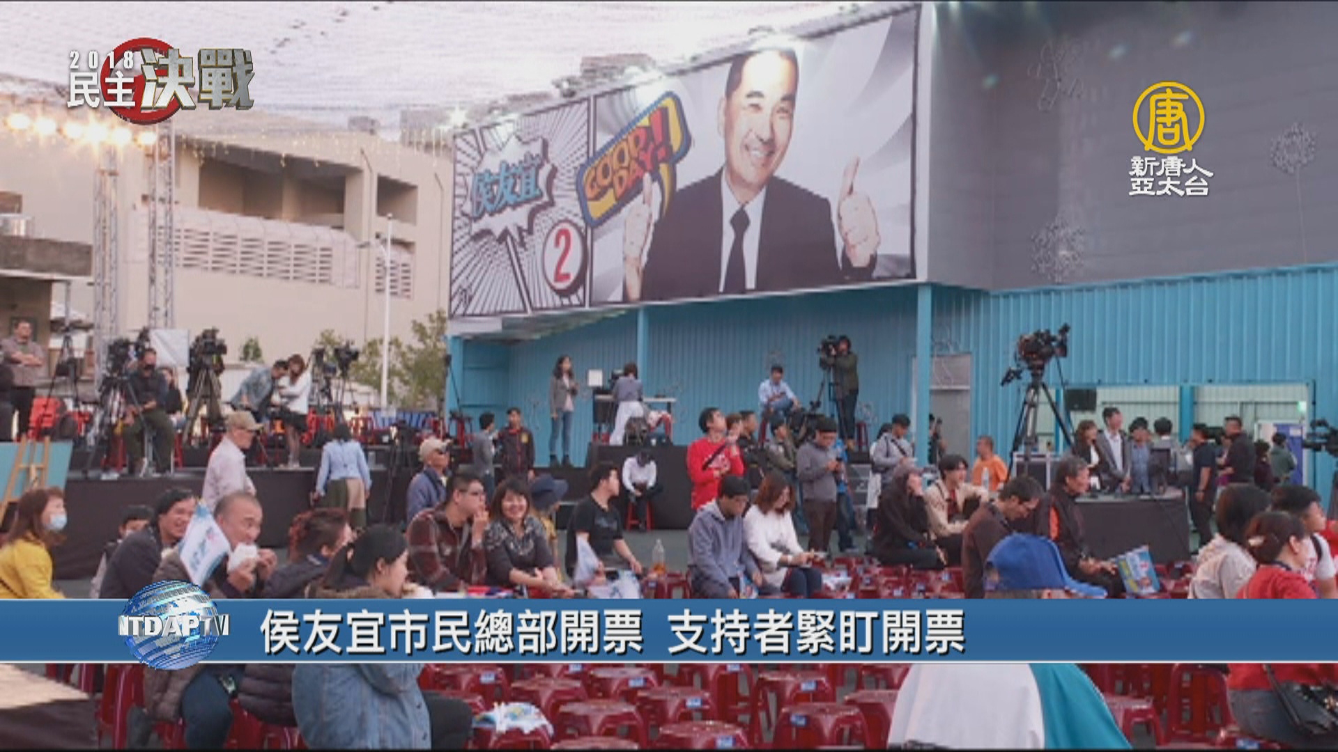 【新唐人亞太台 2018 年 11 月 24 日訊】選戰鏡頭轉到新北市,侯友宜陣營目前是在板橋進行開票。馬上來看到稍早現場的情形。