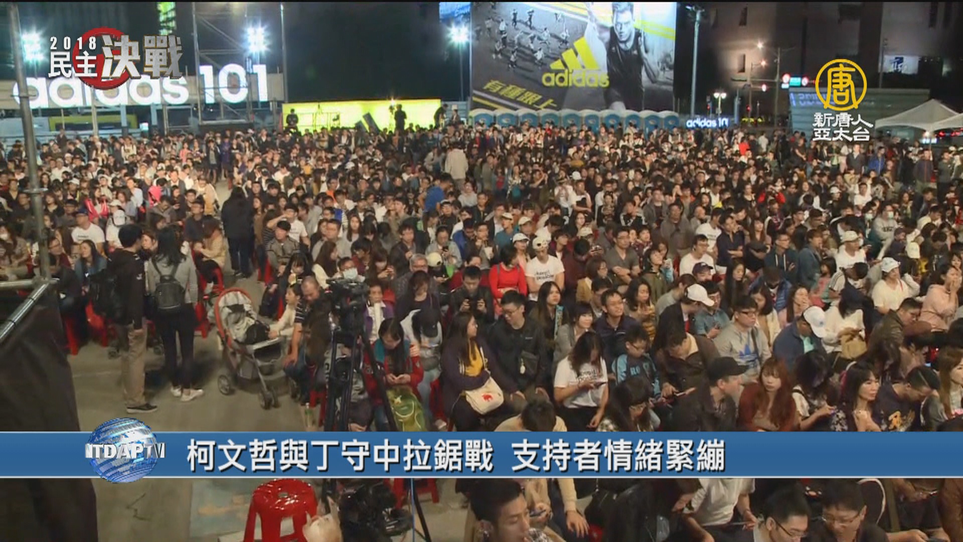 【新唐人亞太台 2018 年 11 月 24 日訊】好,票數陸續開出,現任市長柯文哲票數,稍早遭到對手丁守中逆轉,兩人持續拉鋸,接下來,馬上連線人在柯文哲開票現場的庭鋒,庭鋒。