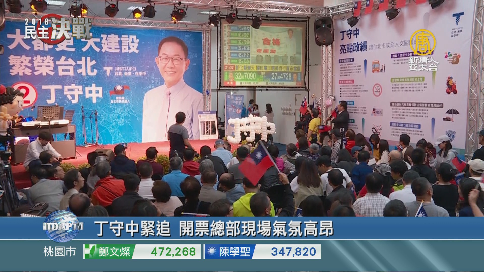 【新唐人亞太台 2018 年 11 月 24 日訊】好,有北市「章魚哥」之稱的天玉里,票數已經開完,丁守中勝柯文哲102票。目前丁守中總部現場氣氛高昂。馬上連線記者,東旭。