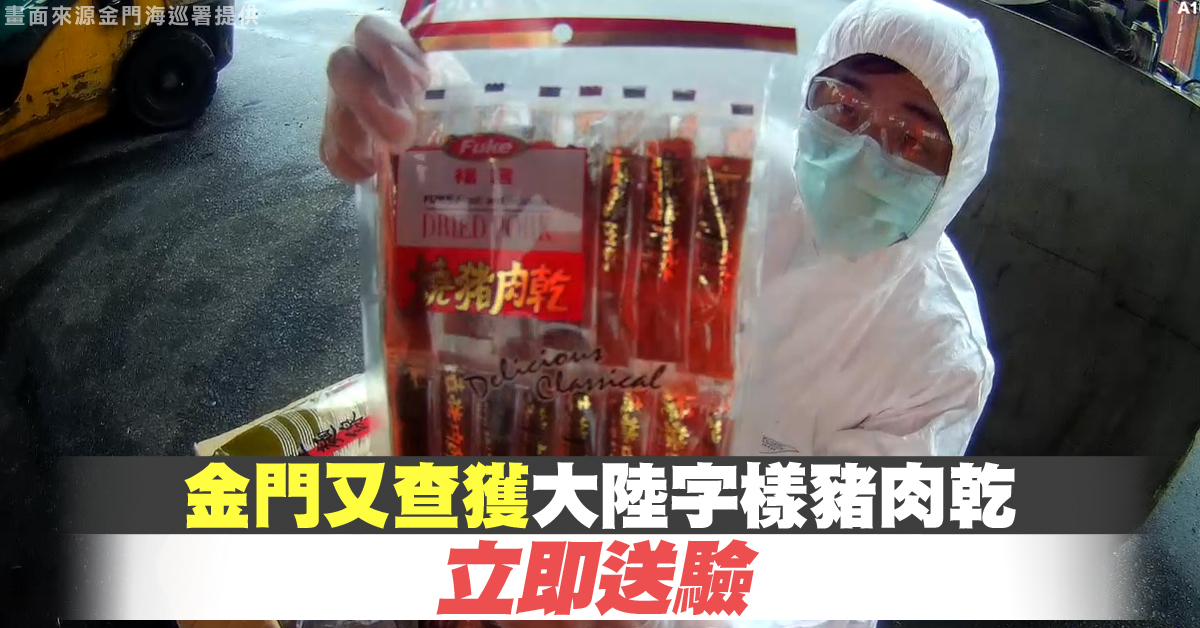 金門防檢人員:「內容含大陸字樣豬肉乾,內容含大陸字樣豬肉乾」