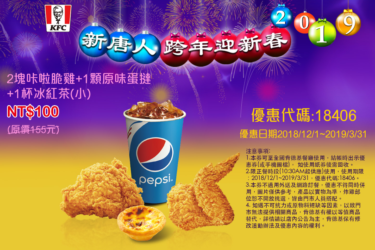 肯德基【新唐人♥跨年迎新春】優惠代碼18406
