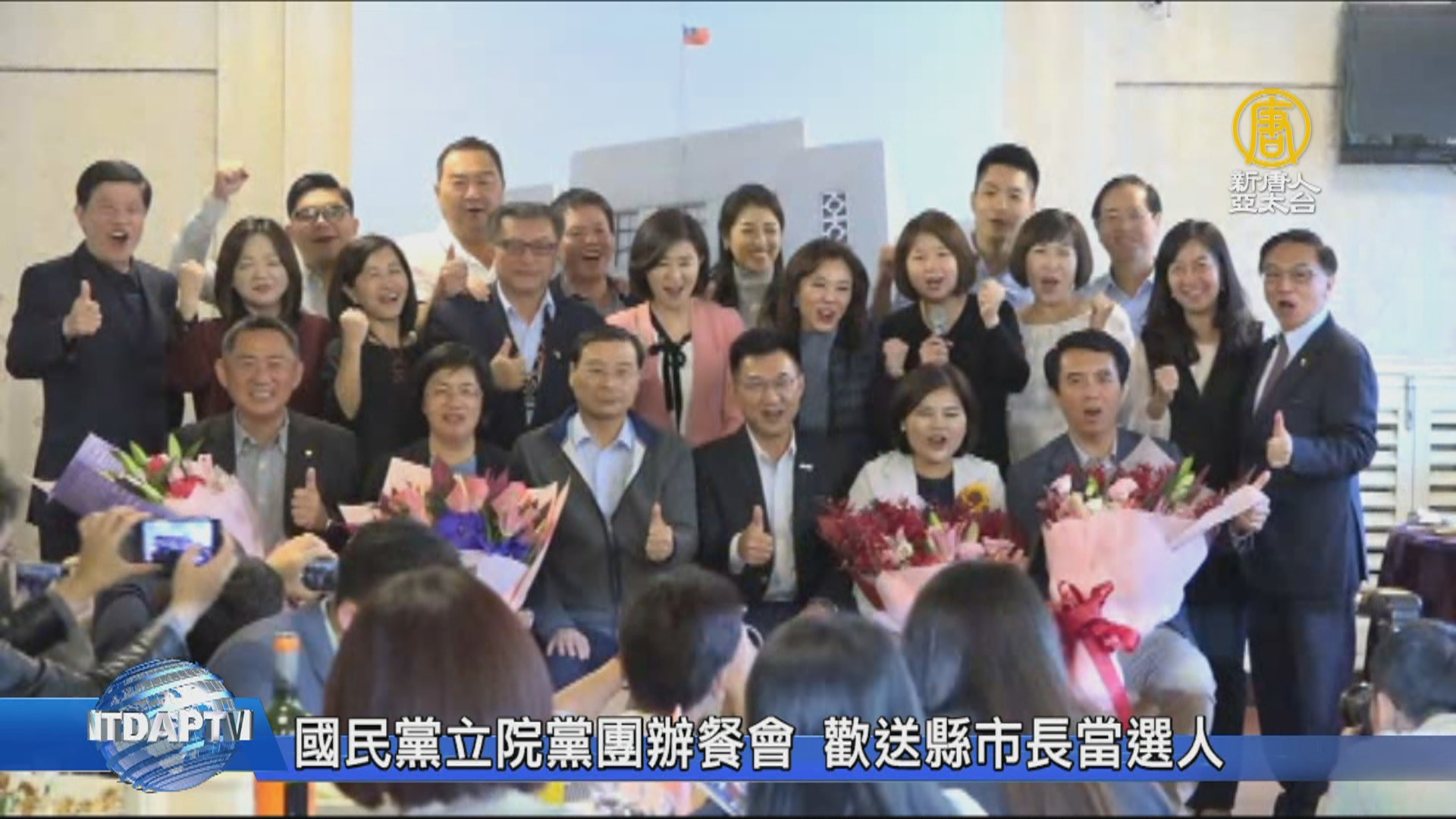 【新唐人亞太台 2018 年 11 月 30 日訊】國民黨立院黨團今天中午在立院舉辦餐會,歡送當選縣市首長的立委,現場氣氛熱烈,展現出勝選後的喜悅,餐會由立法院前院長王金平主持,王金平除了恭喜當選縣市首長的同仁,也感謝其他幫助輔選的立委。