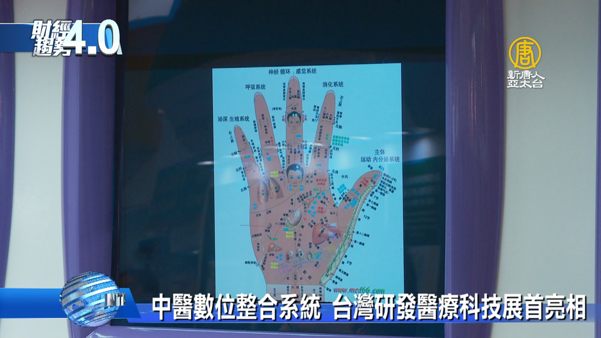 【新唐人亞太台 2018 年 12 月 01 日訊】繼續來看到,台灣醫療科技展,今年以「物聯科技數位醫療」為主軸,超過20家醫學中心及區域醫院共同展出。也有資深的9代中醫世家,把傳統中醫理論與AI數位科技結合,研發出中醫數位健康整合系統,幫助醫生判斷,各經絡對應的器官,或身體部位,是否發生異常。