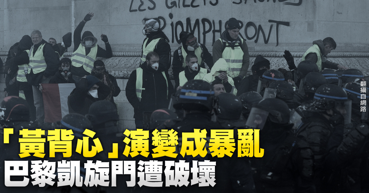 「黃背心」演變成暴亂 巴黎凱旋門遭破壞
