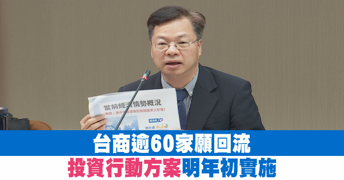 【新唐人亞太台 2018 年 12 月 04 日訊】美國總統川普,針對中共提出各項貿易關稅制裁,不過兩國暫時休兵三個月,經濟部次長龔明鑫今天召開記者會說明貿易戰影響,會持續邀請台商分散風險布局,回台投資,相關單位表示,總計已經超過六十家業者表達回台意願。