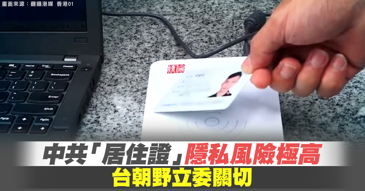 2018-12-06 12:53:51之前在台灣引發的高度爭議的中共居住證,港媒最近實測發現,中共最近發放的港澳台居民居住證,外洩個資風險極高,用大陸市面上可買到的讀卡器,就可隔空讀取;領卡的8萬名港澳居民、幾萬名台灣人都深陷隱私危機。