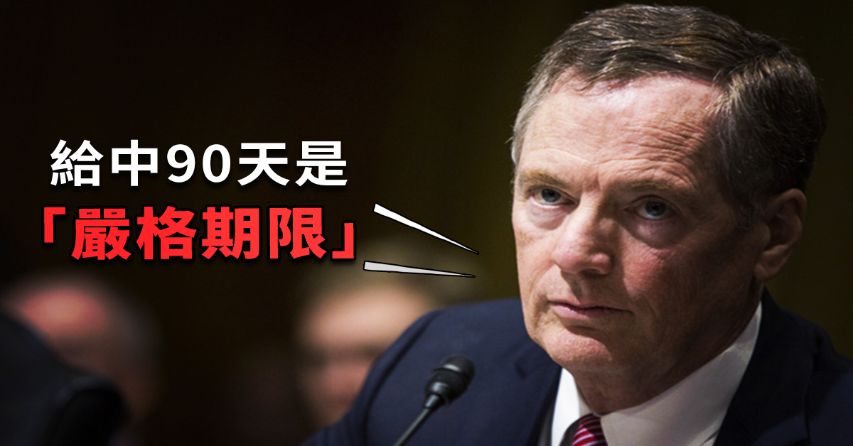 9號,美國貿易代表萊特海澤(Robert Lighthizer)接受哥倫比亞廣播公司(CBS)政論節目「面對全國」(Face the Nation)專訪。他表示,90天的談判期是「嚴格期限」,不會延長。