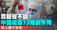 質疑聲不斷!中國疫苗73種副作用 世上最不安全