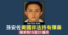 孫安佐美國非法持有彈藥 檢求刑15至21個月