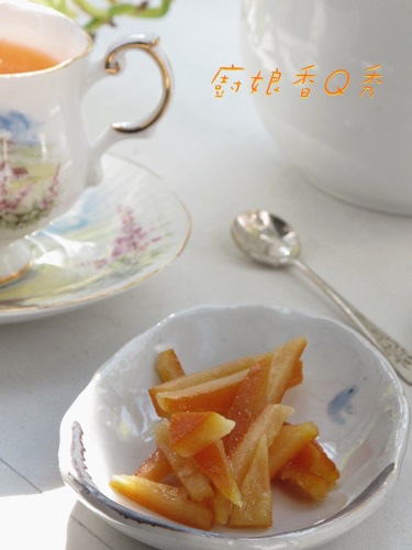 蜜漬柳橙皮泡熱水喝也不錯,也可以加在麵包或蛋糕裡,增添風味