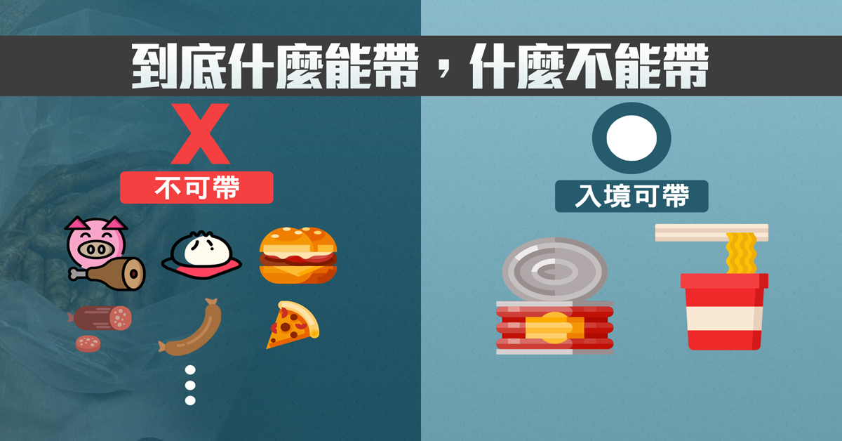 【新唐人亞太台 2018 年 12 月 18 日訊】好的,為了保護國內的整體豬肉相關產業,政府現在是祭出最高規格的防疫。如果違法利用網購,買疫區肉品,最高可能判七年徒刑,併科300萬罰金。而違規從疫區帶肉品入境,抓到就罰20萬元,再累犯直接罰到100萬,包括中國人、外配、在台工作外籍人士都會追討。如果是陸客、外籍人士,會請陸委會、外館追討10年,是否拒入境待研議。不過到底什麼能帶,什麼不能帶呢?防檢局指出,只有罐頭及泡麵中的調理包可以帶入境,其餘肉製品,包含生肉、生鮮、真空包裝的豬肉產品,如加工肉類、內餡含肉製品的食物、含有肉的湯品、動物飼料等,全都禁止攜帶入境。