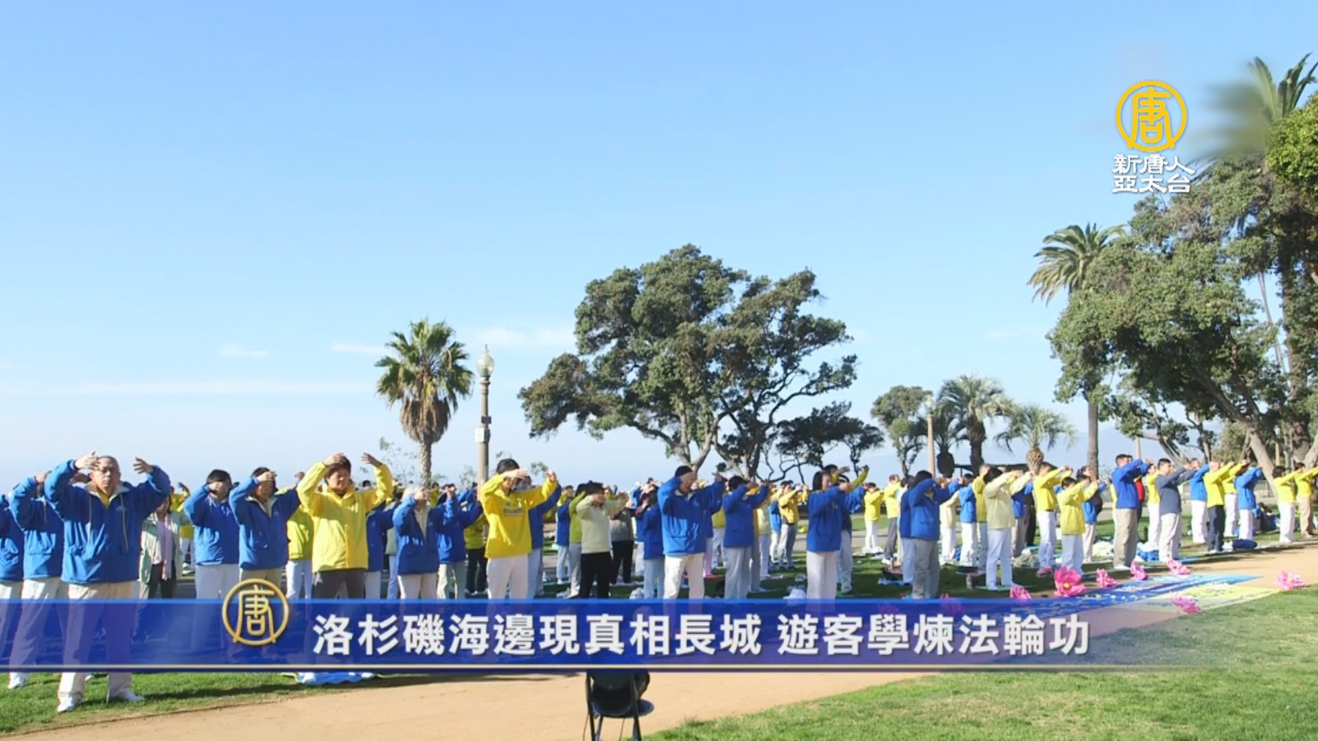 洛杉磯海邊現真相長城 遊客學煉法輪功