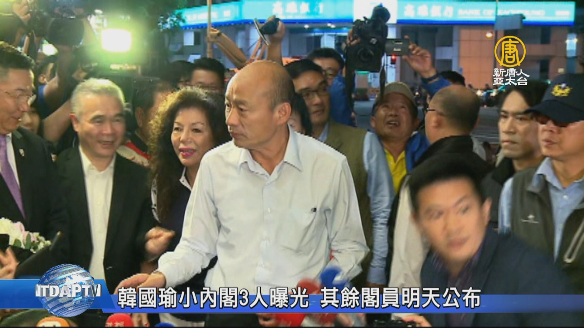 【新唐人亞太台 2018 年 12 月 19 日訊】韓國瑜準新聞局長今天(19日)證實外傳三位小內閣成員:民政局長曹恒榮,海洋局長朱挺玗,觀光局長潘恆旭名單。不過,準高雄市長韓國瑜晚上出席感恩餐會,不願透露更多內閣名單,他表示明天下午四點統一發布。