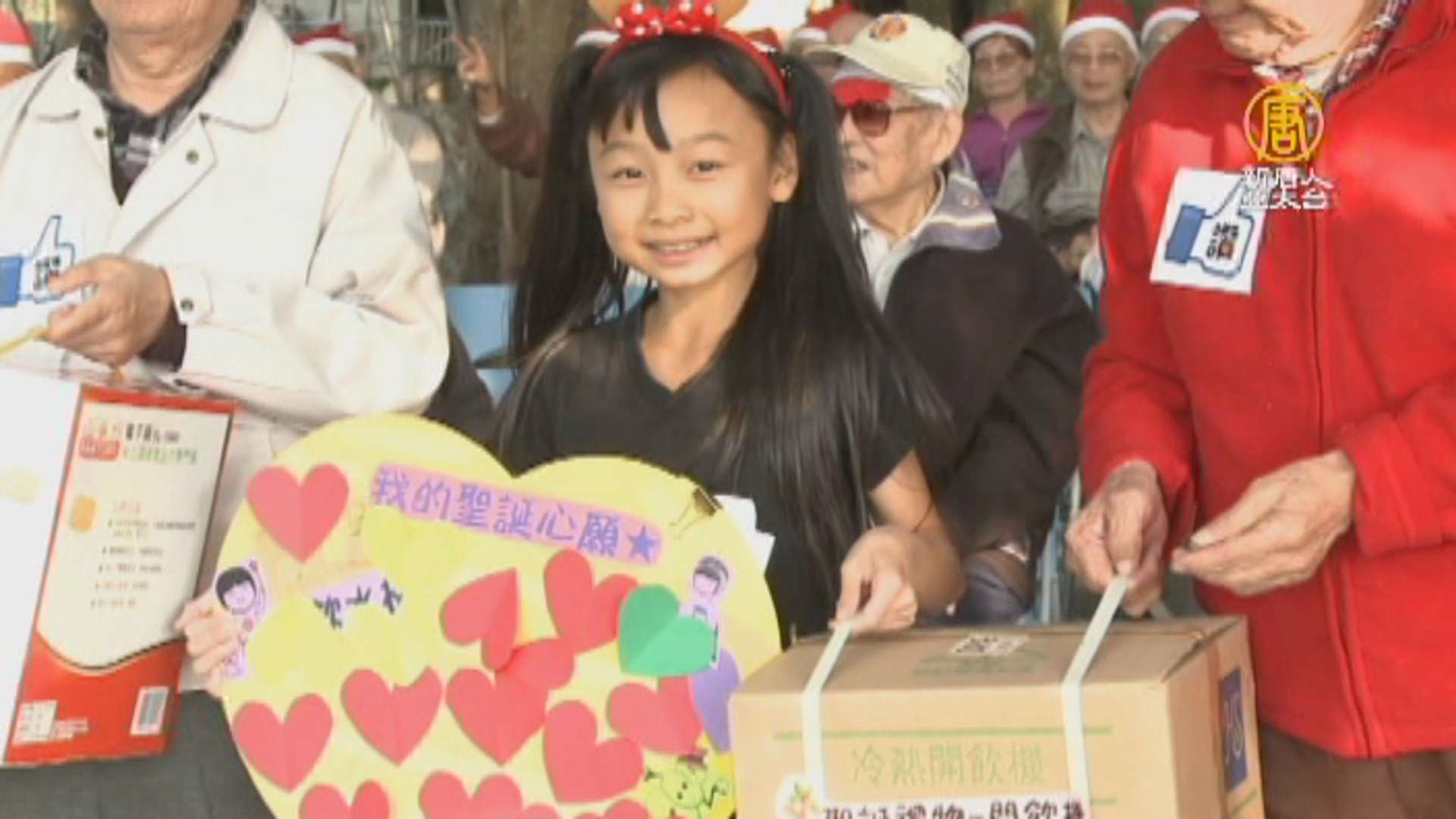 【新唐人亞太台 2018 年 12 月 20 日訊】歡迎回來。聖誕節就快要到了,小朋友最期待的就是收到聖誕禮物,中彰榮家爺爺奶奶們,連續九年扮演聖誕老公公,幫小孩圓夢,有位小妹妹貼心許願一台飲水機來泡熱牛奶給外婆喝,榮家的爺爺奶奶一一變出禮物來,場面熱鬧又溫馨。