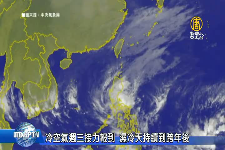 【新唐人亞太台 2018 年 12 月 24 日訊】受東北季風南下影響,今天北台灣濕涼,氣象局表示,明天氣溫將小幅回升。到了週三,還有一波冷空氣報到,強度可能達到大陸冷氣團等級,大台北地區低溫將下探14度,並且有明顯的降雨。由於這波冷空氣影響時間較長,預計到跨年後,全台仍然濕冷。