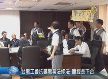 2016-07-27 21:16:45能源局今天(27日)早上舉辦第2場電業法修正草案說明會,邀請包括工商團體、環團還有台電工會代表出席,結果台電工會因不滿,電業法修正沒有納入台電員工的意見,痛批經濟部詐騙,要求經濟部長李世光下台!