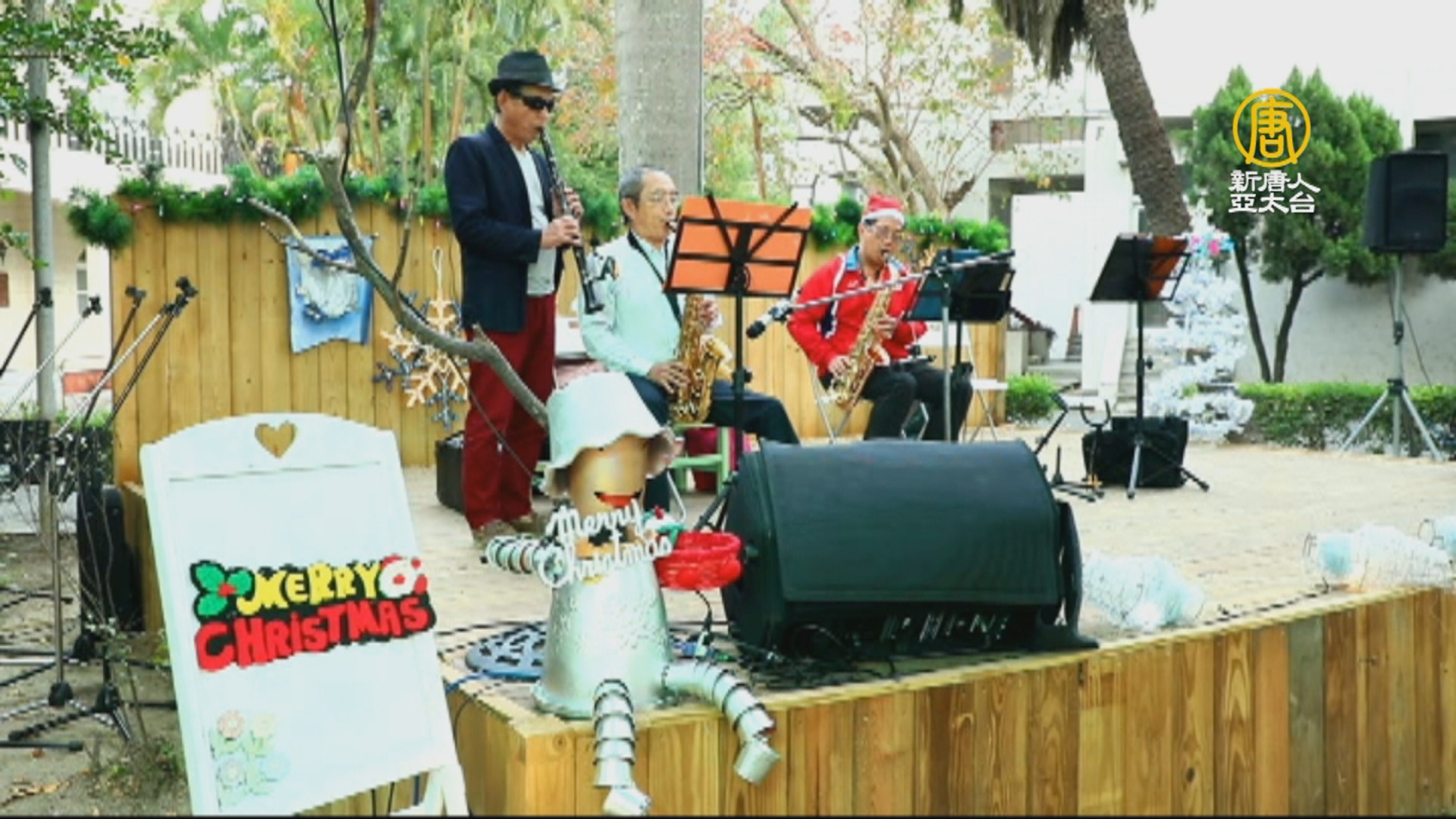有的人正在台上表演薩克斯風、有的人正在台下準備烏克麗麗和小提琴,還有的人正在準備晚上要用的聖誕樹,他們都在為雲林北港糖廠這場難得的音樂會而努力。